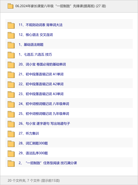 本次分享的资源是《2024八年级“一招制敌”先锋课》,专为英语提分设计!