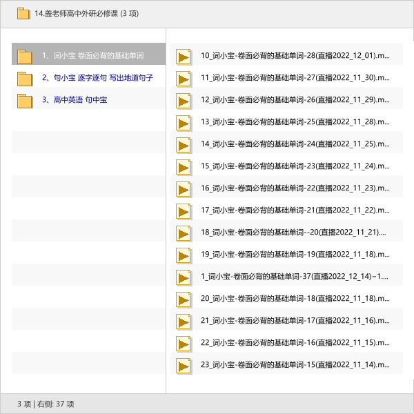 本次分享的资源是《盖老师高中外研必修课》,包含“词小宝”、“句小宝”和“句中宝”三部分。