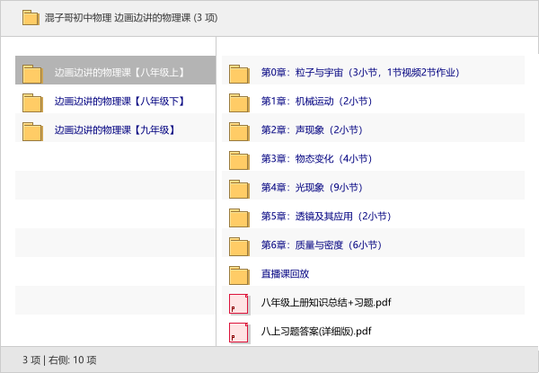 本次分享的资源是《混子哥初中物理 边画边讲的物理课》,包含了八、九年级的全套内容。