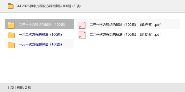 本次分享的资源是《2026初中方程及方程组解法100题》,里面干货满满!
