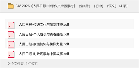 本次分享的资源是《人民日报•中考作文宝藏素材》全4册。
