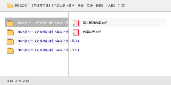 本次分享的资源是2026版初中《万唯预习课》八年级上册的全套资料,涵盖了数学、语文、英语和物理(人教版)。