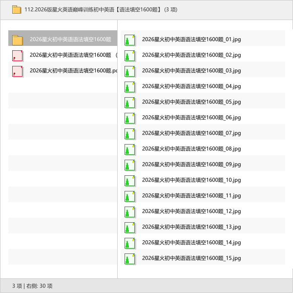 本次分享的资源是2026版星火英语巅峰训练初中英语语法填空1600题,专为初中生语法巩固设计。