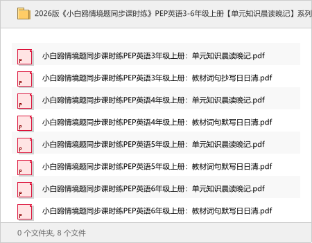 本次分享的资源是2026版《小白鸥情境题同步课时练》PEP英语3-6年级上册的【单元知识晨读晚记】系列。