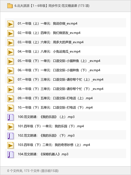 本次分享的资源是《北大派派同步作文·范文精读课》,覆盖小学1-6年级的课堂同步单元。