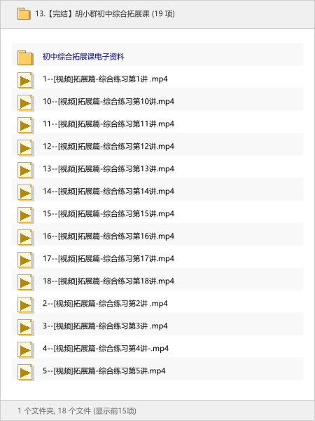 这套课程包含完整的电子资料和18讲高清视频,专门针对初中知识的综合拔高与思维拓展。