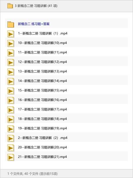 本次分享的资源是新概念二册的习题讲解,包含全套练习题和近40节视频讲解。
